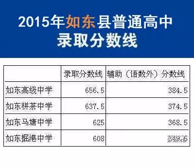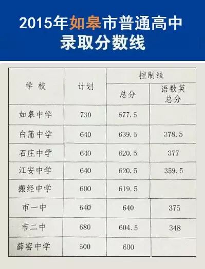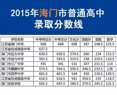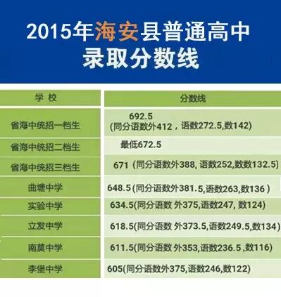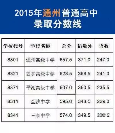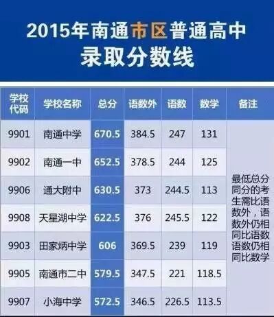 2015年南通地区高中录取分数线汇总