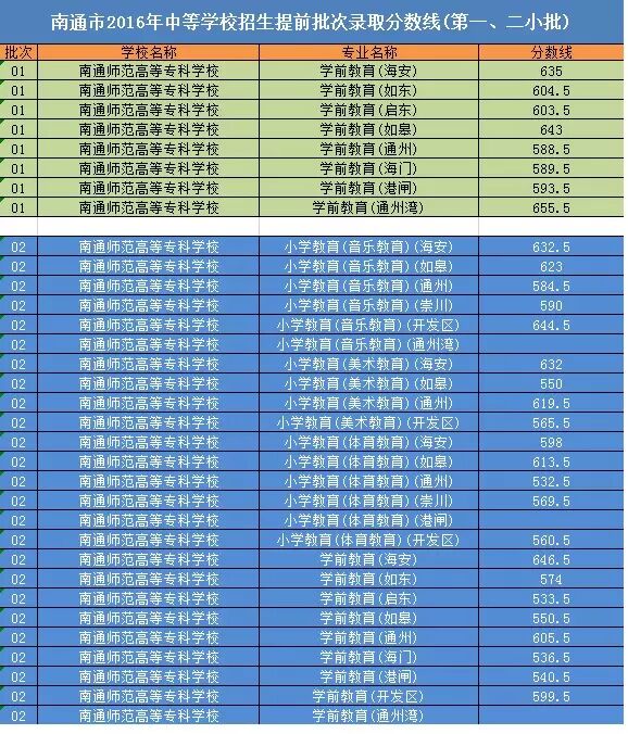 南通市2018年中等学校招生提前批次乡村教师定向培养录取分数线已公布